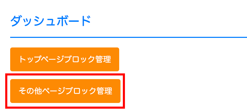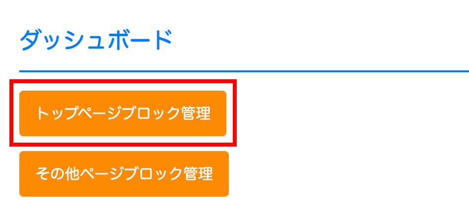 ダッシュボードには「お知らせ」の他、「トップページ編集ブロック管理」ボタンと、「その他ページ編集ブロック管理」ボタンがあります。