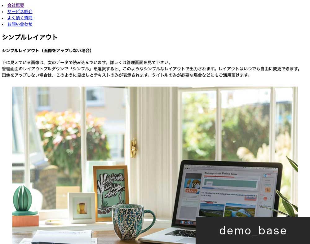 - トップページ以外の出力。1つのレイアウトのみ使用すれば一覧ページのようになります。