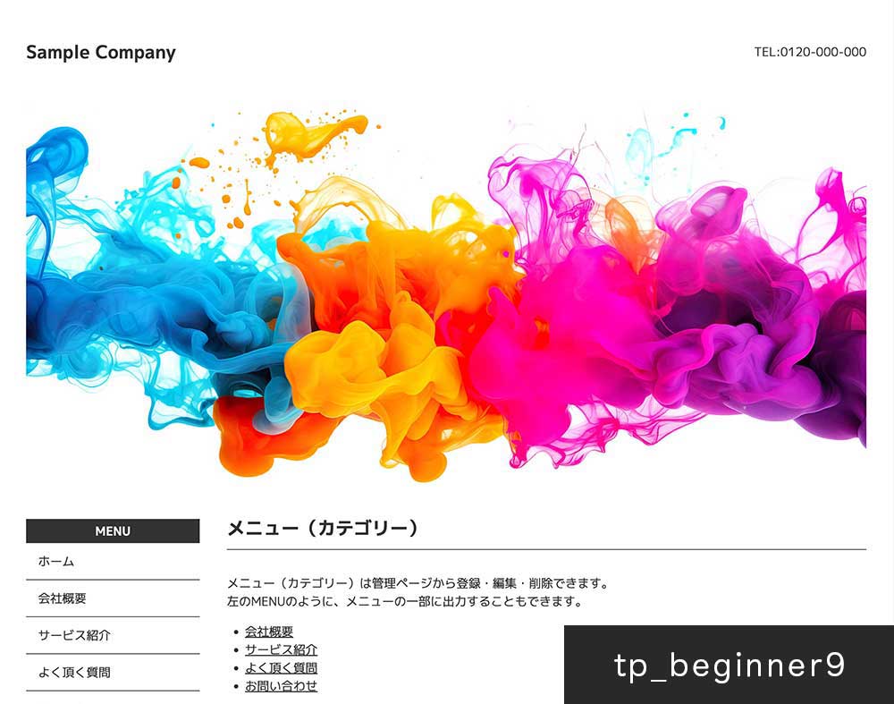 https://〜〜〜/tp_beginner9_white_cms/ - 以下のように表示されればOKです。