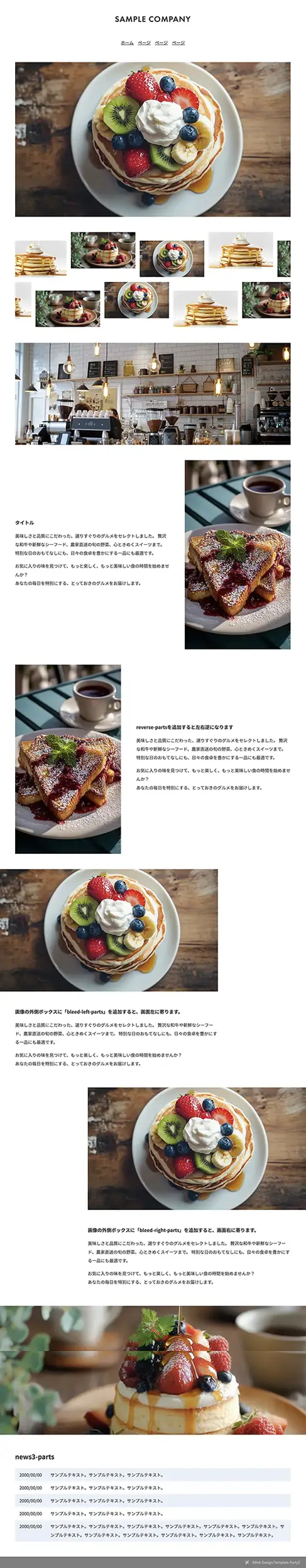 完成済みのHTMLテンプレートをそのまま使うのではなく、必要なパーツだけを組み合わせて作れるため、自由に調整しやすく、Web制作の時短にもつながります。