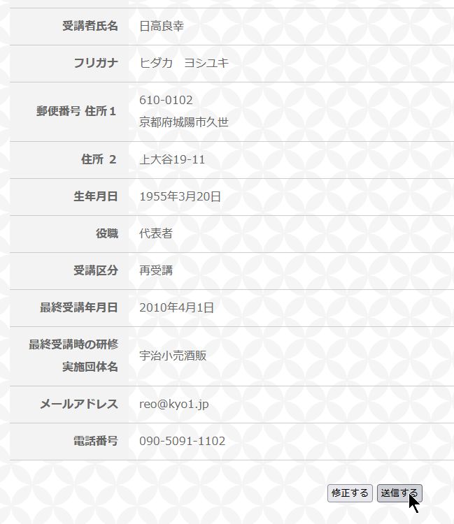 なお、 入力画面に戻る ボタンもないので ブラウザーの戻るを