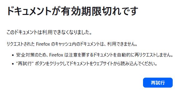 クリックすると 「 ドキュメントが有効期限切れです 」とコメントが