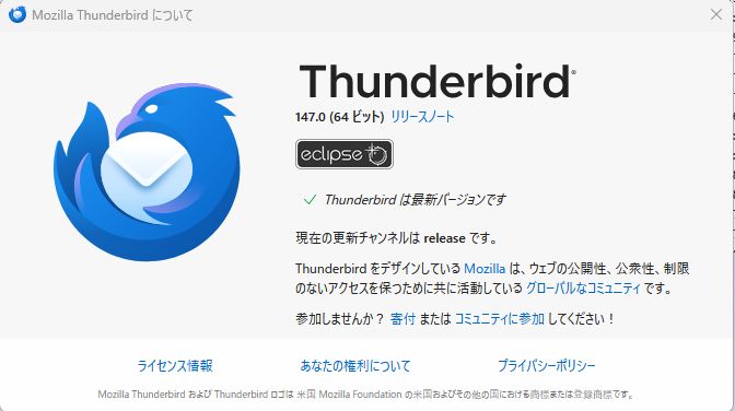 1. メールソフトは Thunderbird 147.0 (写真参照 1枚目)