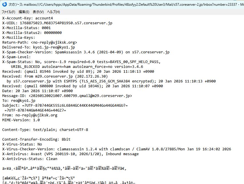 原因は、coreserver側(+ウイルス/スパムチェック)の処理でヘッダ区切りが誤認識され、本来ヘッダに入るべき Content-Type などが本文側に落ちてしまうケースでした。当サイトの環境では発生しませんでしたが、他のサーバーでも同じ問題が出る可能性があります。