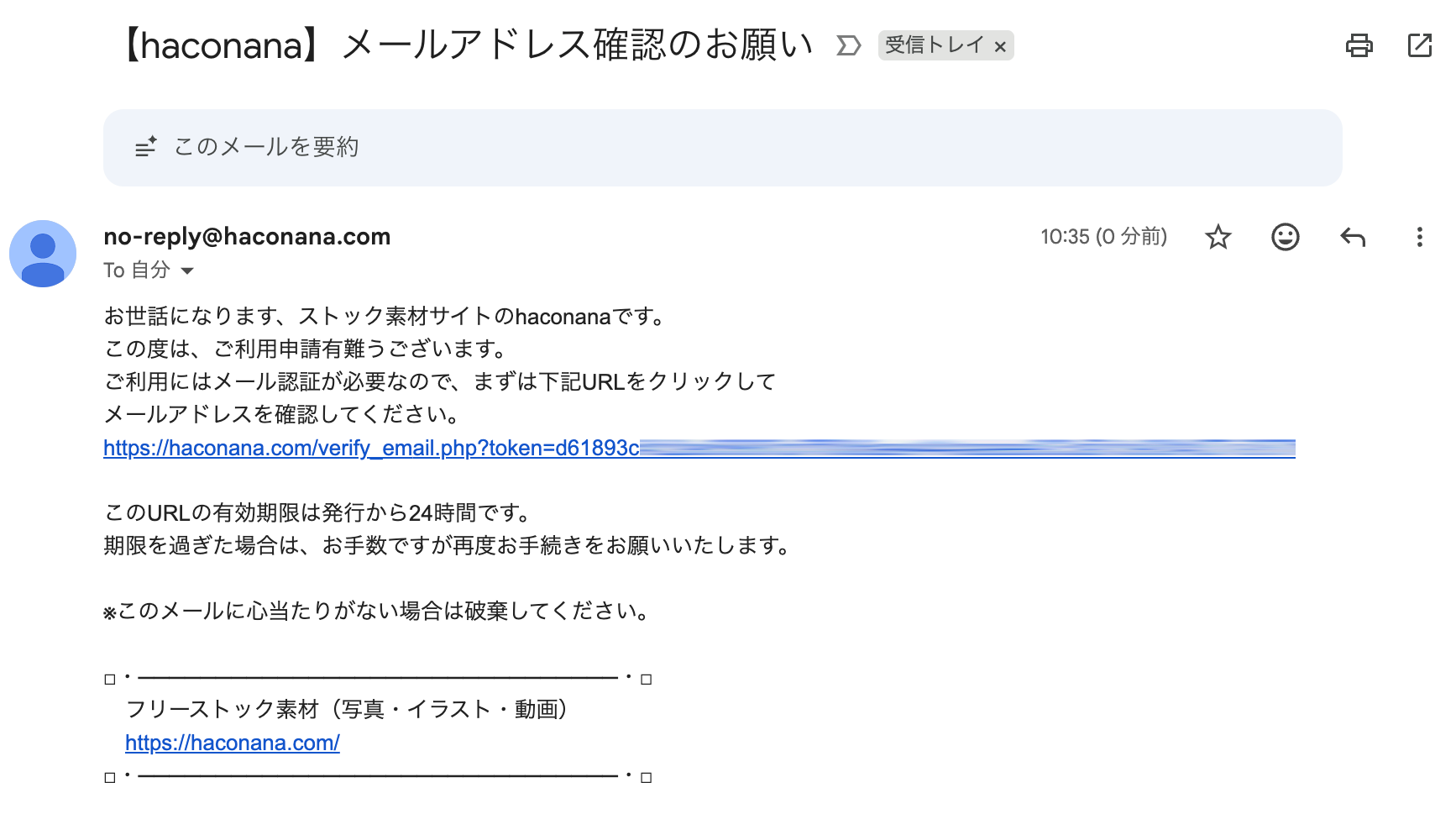 自動メールが届くので認証して下さい
