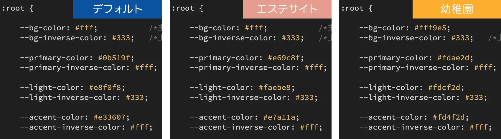 一番左の青系がコピペしただけのテンプレ(デフォルト)です。