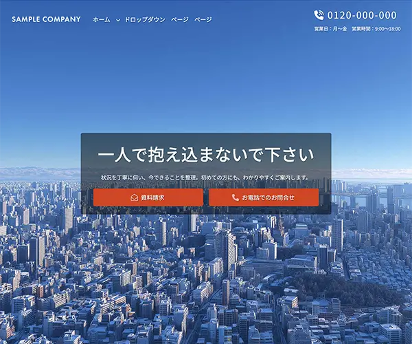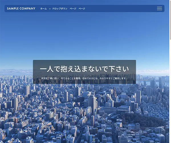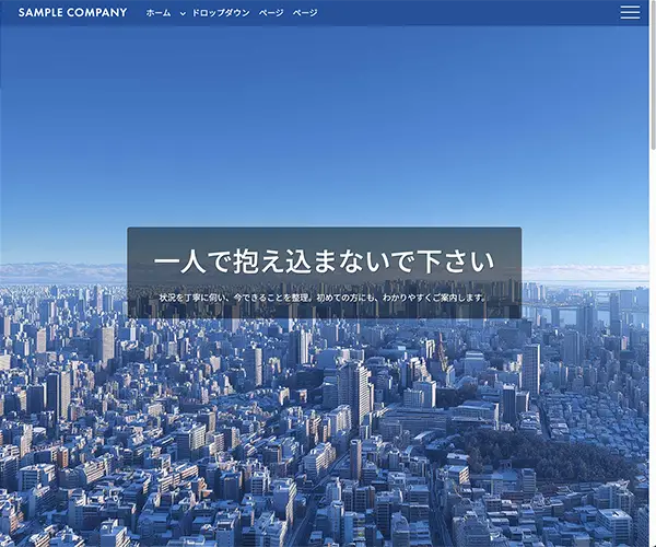 メイン画像は1枚の静止画。スクロールでヘッダーが見え隠れするタイプ。