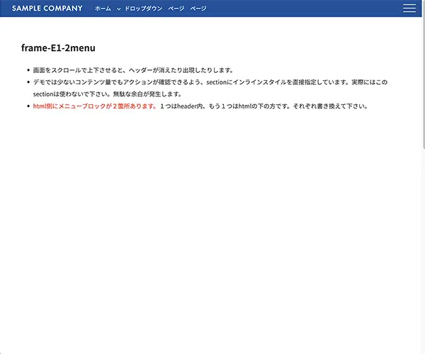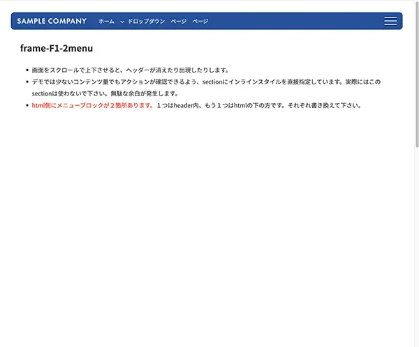 スクロールでメニューがウィンドウ上部で固定されるタイプ。