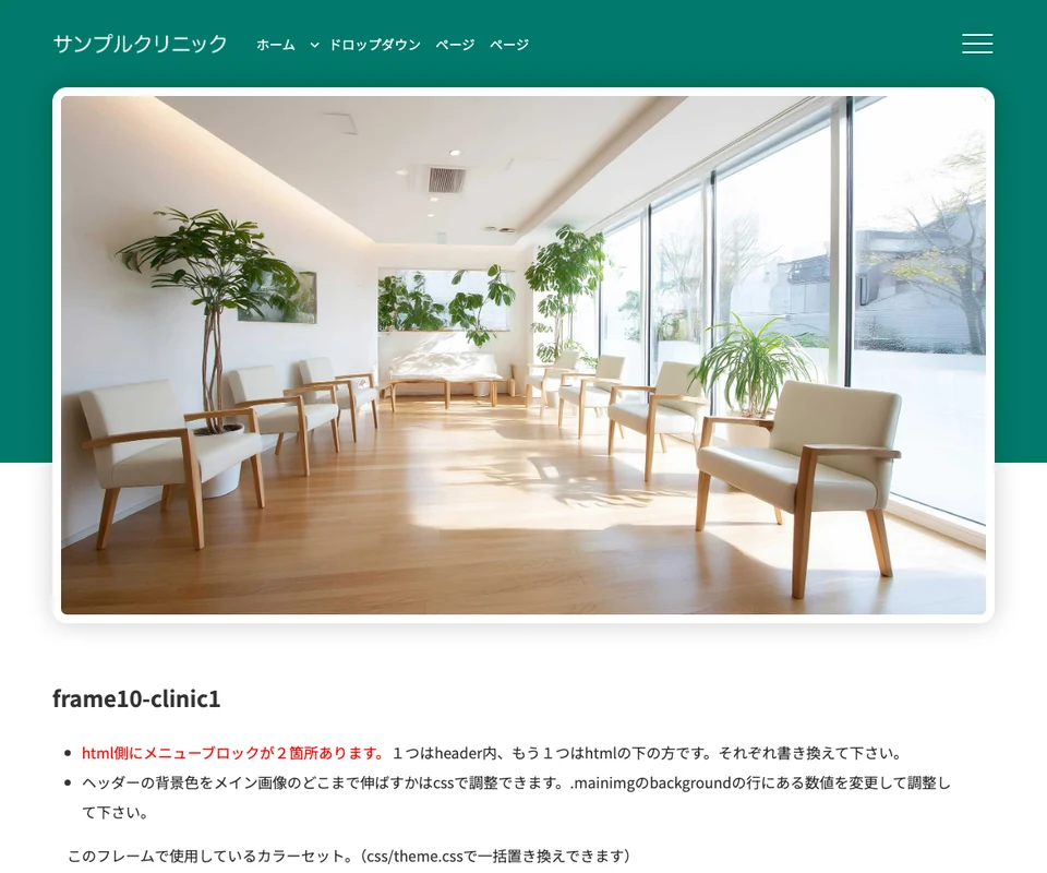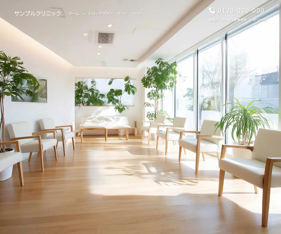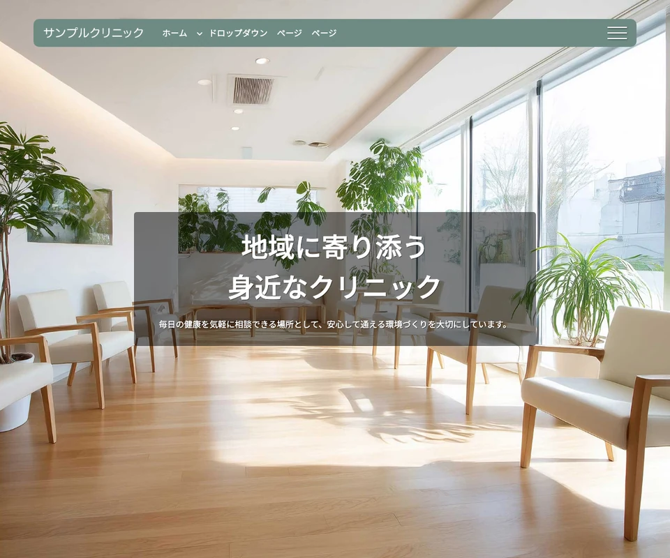 メイン画像は静止画。医療・クリニック向けの清潔感のある構成です。