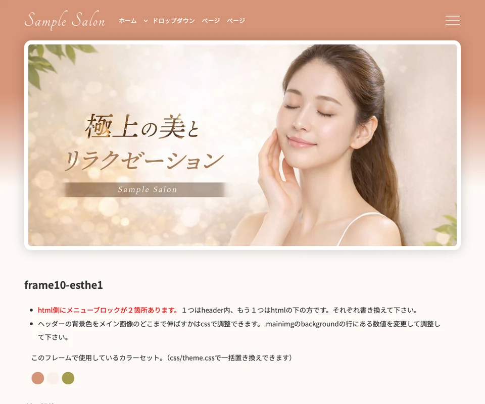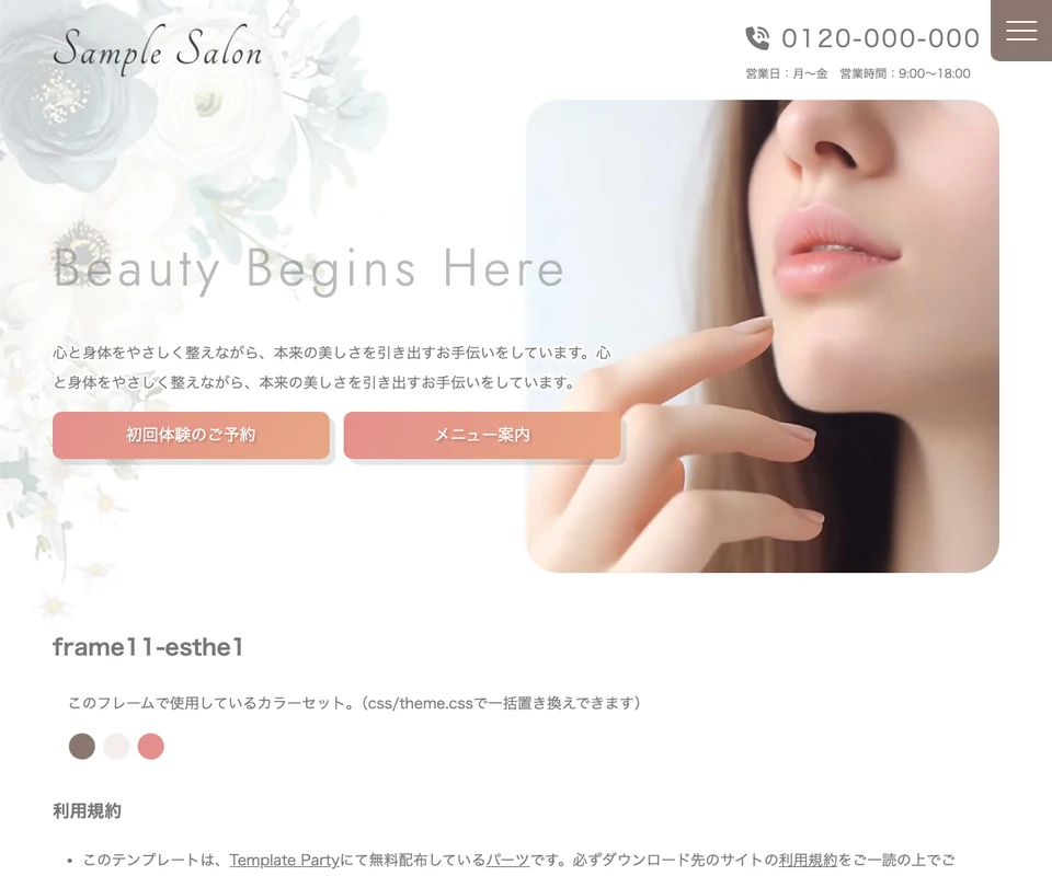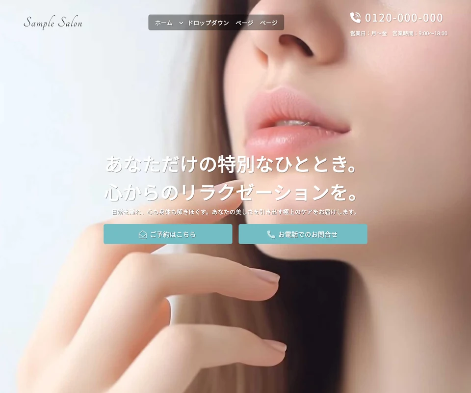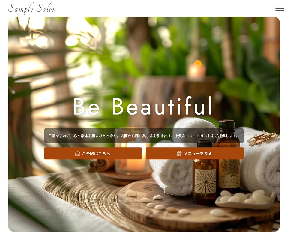 メイン画像はスライド(ズーム)。エステ・ビューティーサロン向けの上品なデザインです。