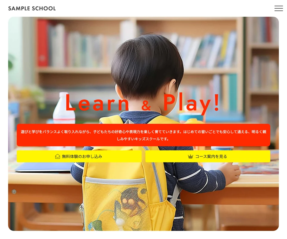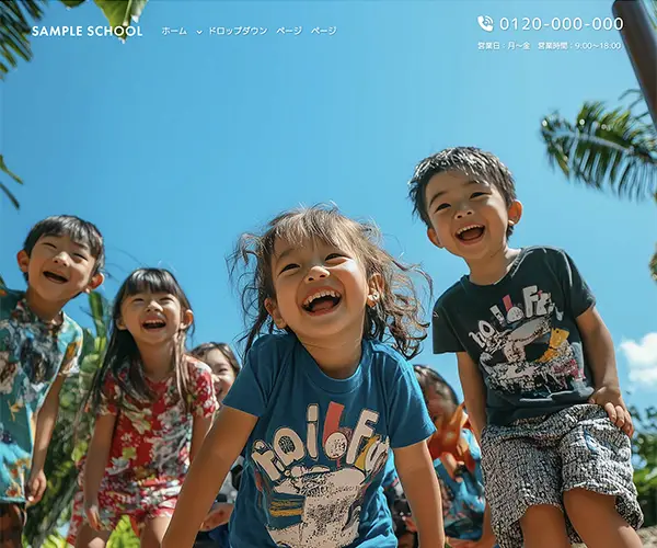 メイン画像は動画。子供・スクール向けのポップな構成です。