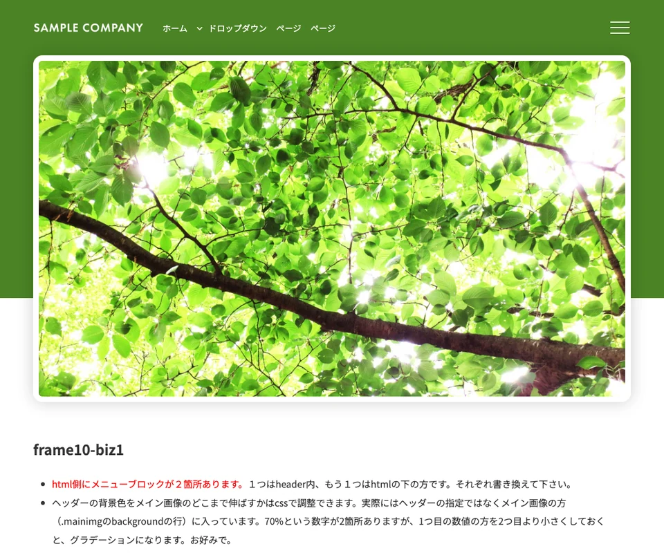 メイン画像は静止画。企業サイト向けのベーシックな構成です。
