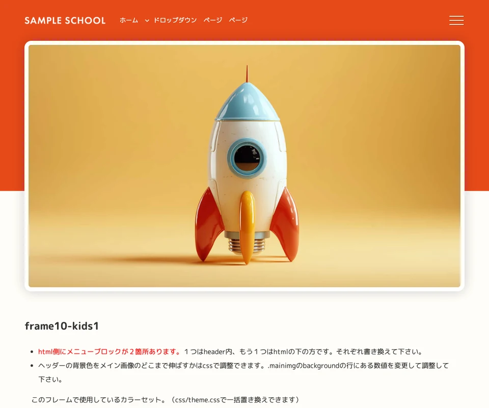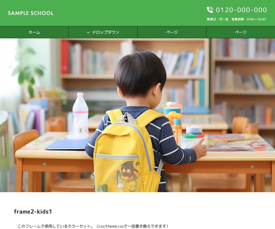 メイン画像は静止画。子供・スクール向けのポップな構成です。