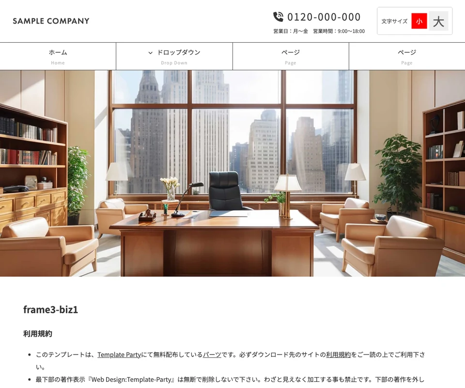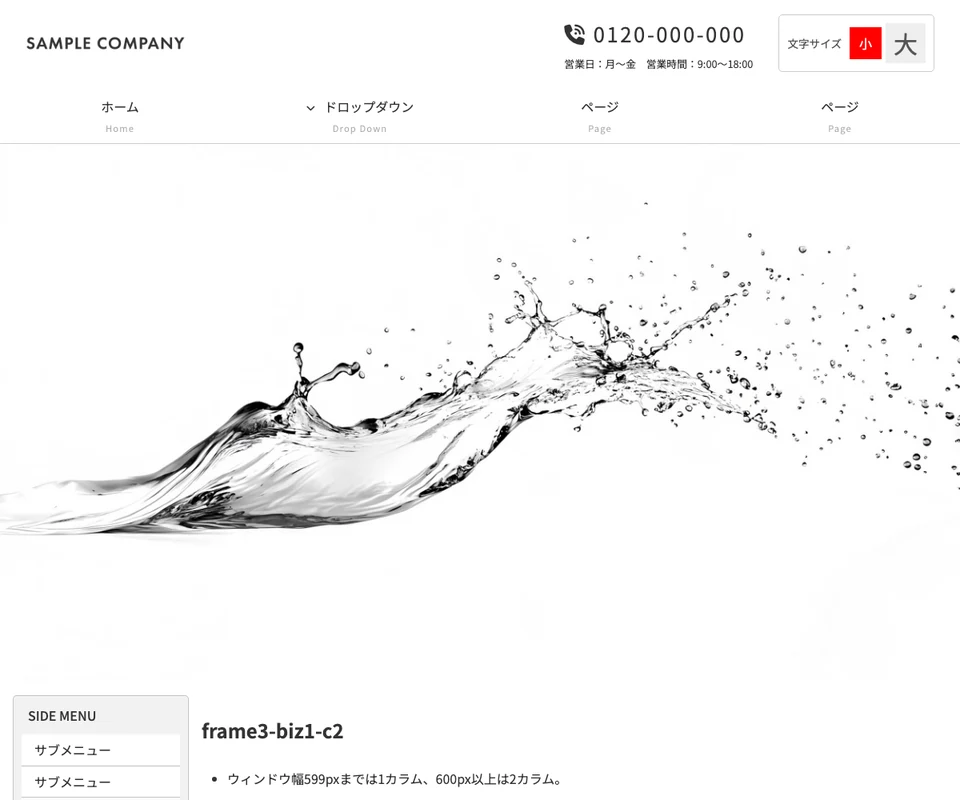 メイン画像は静止画。文字サイズ変更ボタンつき。企業サイト向けのベーシックな構成です。