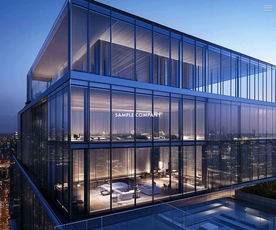 メイン画像は動画。ロゴが天地左右の中央に配置。メニューは開閉タイプです。企業サイト向けのベーシックな構成です。
