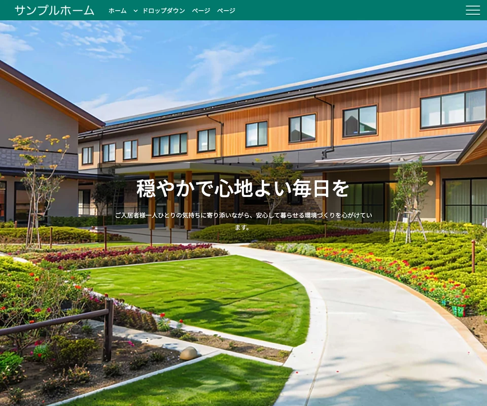メイン画像はスライドショー(ズーム)。老人ホームなど、福祉施設イメージ。