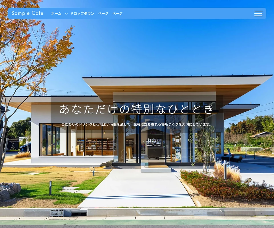 メイン画像はスライドショー(ズーム)。カフェなどの飲食店向け。
