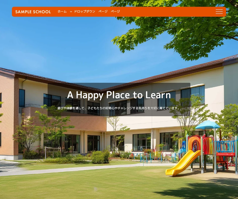 メイン画像はスライドショー。子供・スクール向けのポップな構成です。