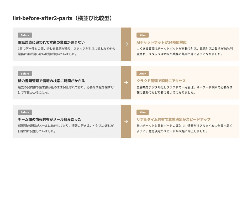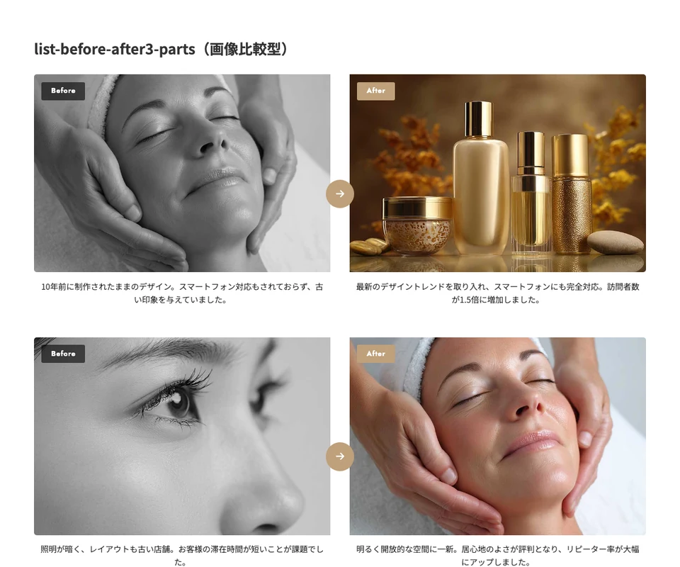 画像を主役にした横並びのビフォーアフターの比較パーツです。