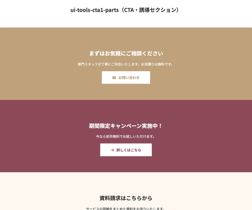 htmlボタンはDLしたフレームの html の main 内に、cssボタンは css/parts.css に、jsボタンは js/parts.js にペーストして下さい。