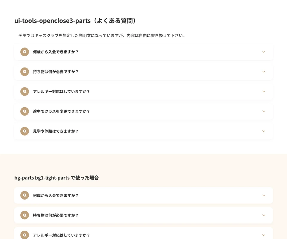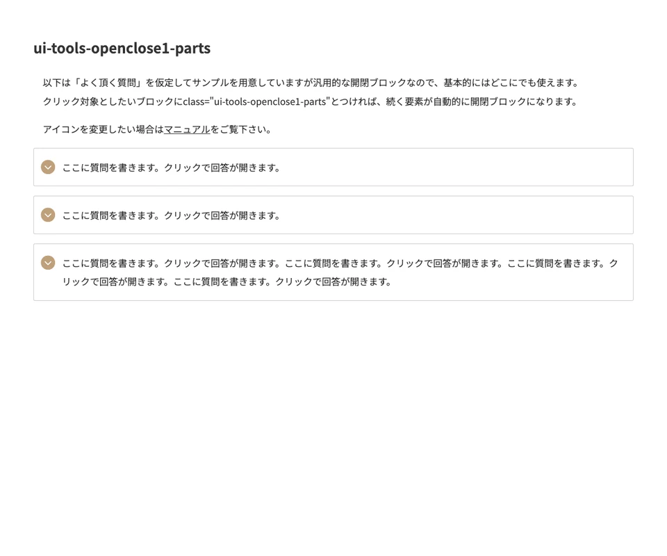 FAQ用などに使える汎用的な開閉ブロック。開閉でアイコンが入れ替わるタイプ。